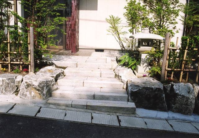 庭に石と苔で築山を作り、落葉樹を中心に植樹しました。 新緑の季節、花の咲く季節、紅葉の季節、落葉後の白砂利と苔の緑だけの季節。四季折々が楽しめる凝縮された庭になりました。